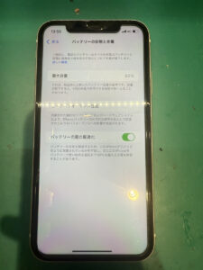 お客様にお持ち込みいただいたiPhone11はバッテリーが劣化し、すぐに残量が減ってしまう状態でした。