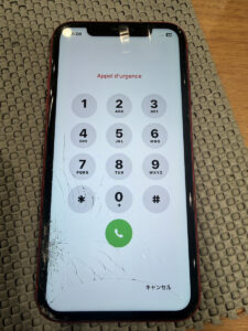 お客様にお持ち込みいただいたiPhone11は画面が割れてバキバキの状態でした。