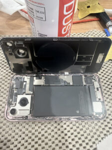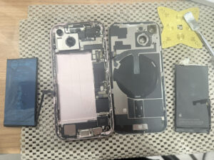 今回はiPhone15バッテリー、画面交換修理を承りました。