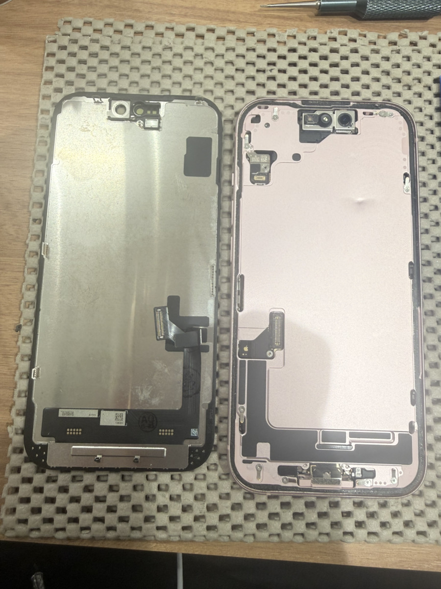 今回はiPhone15バッテリー、画面交換修理を承りました。
