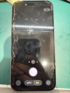 お客様にお持ち込みいただいたiPhone15はアウトカメラが真っ暗で異音が鳴り、何も映らない状態でした。