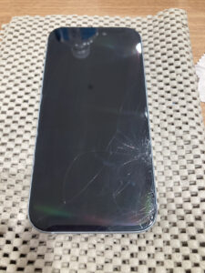 お客様にお持ち込みいただいたiPhone15は落として大きく割れている状態でした。