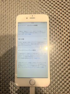 お客様にお持ち込みいただいたiPhone6はバッテリーが劣化し最大容量73%のサービス表記が出ている状態でした。