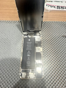 iPhone6は他のiPhoneの機種と違いパネルを上に向けて開ける作業になります。