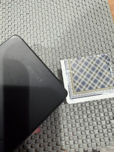 背面パネルはネジで止まっていない為背面パネルを温めながら取り外してまいります。トランプなどを差し込み、中のケーブルなどを傷つけないように慎重に開けていきます。